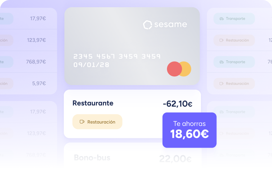 Potencia el bienestar de tu equipo con beneficios exclusivos en restauración, transporte público, formación, guardería y seguro de salud, que mejoren su calidad de vida. Configura los límites, gestiona las solicitudes, asigna tarjetas y crea grupos de empleados sin salir de Sesame.